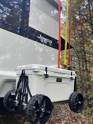 Secure Mounting: Rubberized uprights lock into the sidewalls of the cooler, while horizontal spacer rods provide strong strapping points.